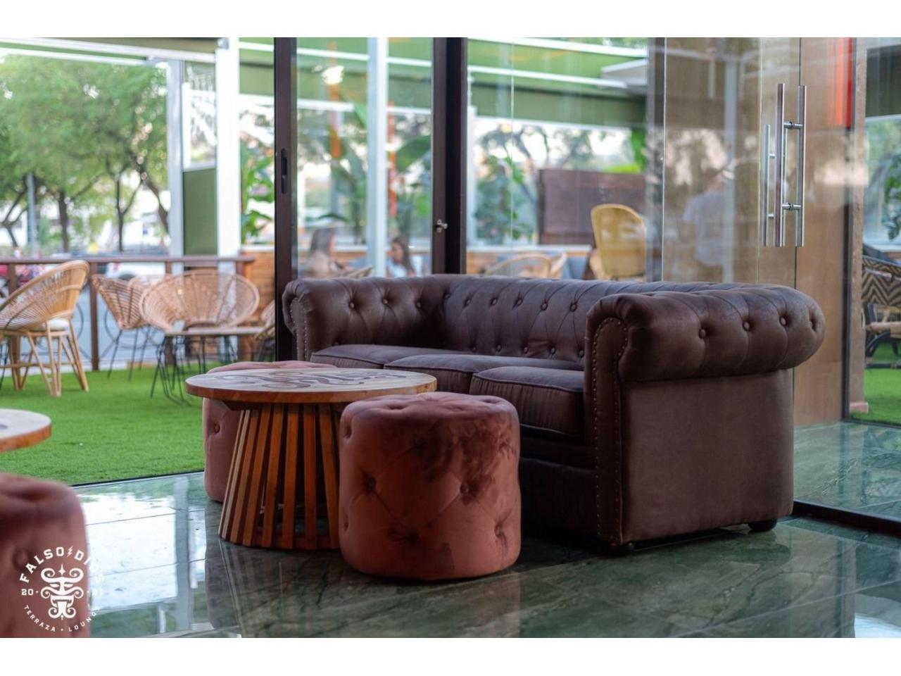 Licencia de terraza suelo privado de uso público. Actualmente mas de 30 veladores exterior (entre sillones, mesas y sillas)